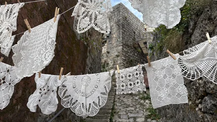 Stringing together your vintage doily garland